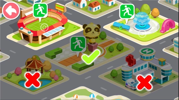 2、在地图中挑选出正确的地震躲避场景,若所选场景正确,将会出现钩钩。