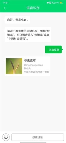 2. 用户能够借助语音或者文字的形式,迅速查询药材相关信息。