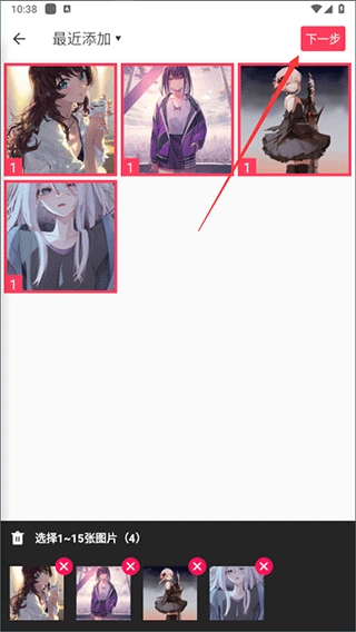 2、在此以【自由拼图】为例,要是您喜欢,也能选择【模板拼图】。先挑选需要拼图的图片,接着点击【下一步】。