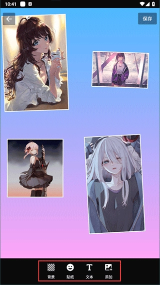 4、还能够通过单击背景,实现背景更换、贴纸添加、文本添加等操作。