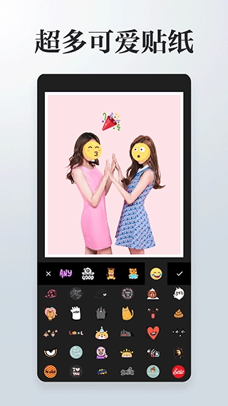 2. P图处理,涵盖滤镜、贴纸、文字、涂鸦及其他效果