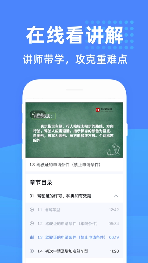 3. 驾考直播讲解:通过视频形式详细讲解知识点,由专业讲师带领学习,讲解生动且清晰。针对驾考中的重难点与各类知识点,进行专项突破,助力学员高效掌握。