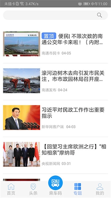 7、回到畅行南通的首页,点击乘车码,就能扫码上车。