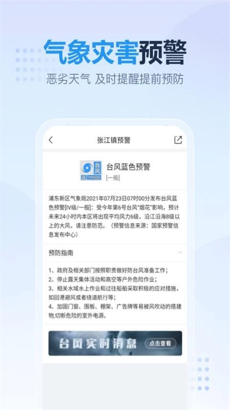 ④及时的天气提醒:提供恶劣天气预警,全面覆盖市、县、区、乡镇,预报精准,推送及时。