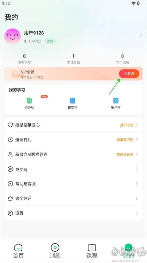 开启并登录新概念AI版,随后进入【我的】页面,点击【vip会员】右侧的【去开通】按键。