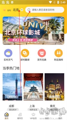 3、倘若您希望查看其他地区的景点,既能够借助定位功能,也可以直接搜索景点名称。