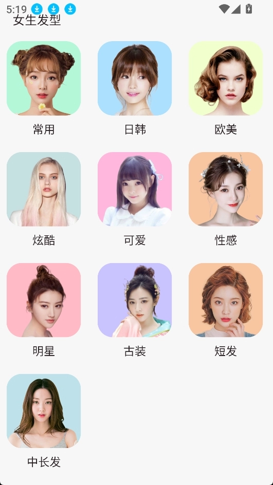 1. 发型类型涵盖日韩、欧美、古装等多种风格,充分满足不同的审美需求。通过快速切换预设发型,能直观查看不同发型呈现的效果。