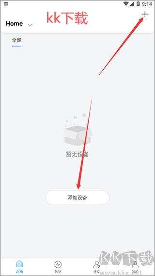 1、进入软件后,点击右上角的 “+” 按钮,或点击 “添加设备” 选项,以此开启新设备的添加流程;