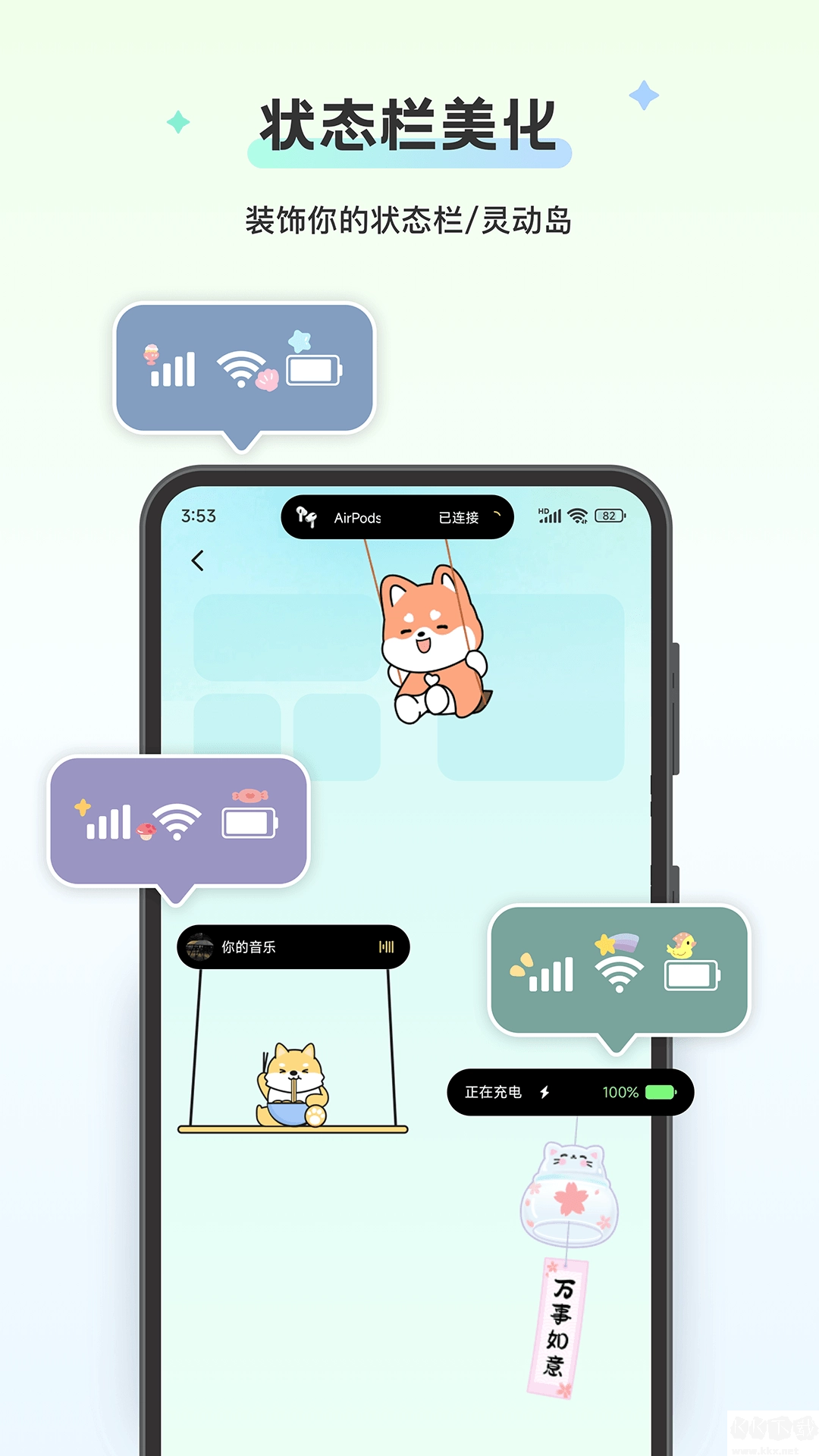 状态栏美化:为你的状态栏添加炫酷贴纸,个性十足。