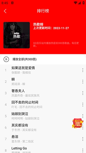 轻听音乐,一款全新上线的音乐播放软件。借助这款音乐播放器,您能随时随地畅享音乐,而且完全免费哦!这里的音乐库极为全面,您只需直接搜索歌曲标题关键字或者歌手姓名,就能迅速找到想听的歌曲,最新歌曲也会在第一时间上架。喜爱音乐的小伙伴们,快来体验吧!