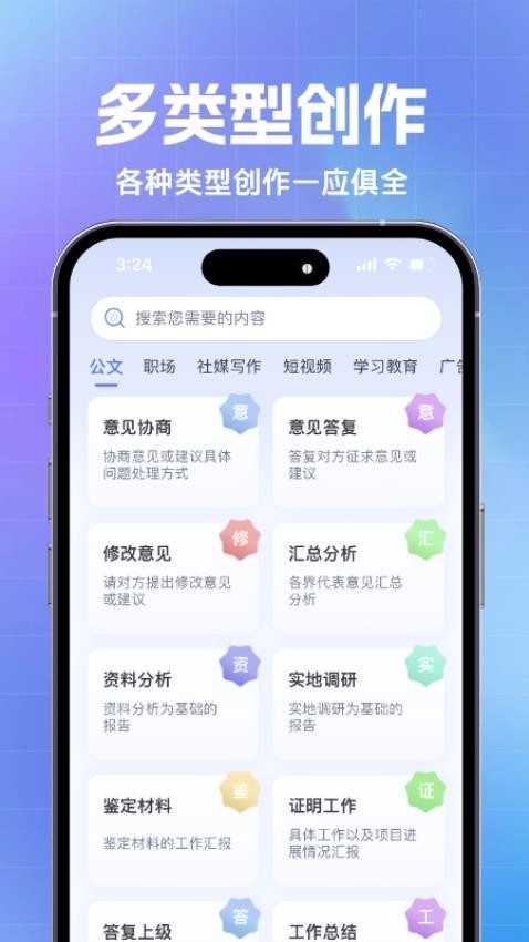 AI公文写作是一款具备全新AI智能书写生成能力的服务型应用软件。借助它,您能够迅速产出各类原创且高质量的文章。其AI写作服务模式极为简便,您可畅享超大量的优质文档素材,还能体验更多精彩有趣的创作形式。这里不仅有诸多独特有趣的文章AI创作类型,更有丰富的权威数据库为您提供解答与分析。