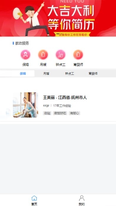3、为解决大家寻找阿姨的难题,提供在线自由挑选合适保姆的便捷方式。