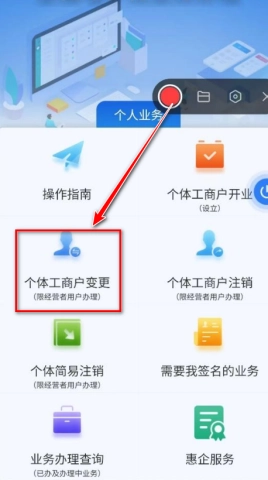 1. 开启冀时办,轻点个体工商户变更选项,操作简便、一目了然,极易上手!