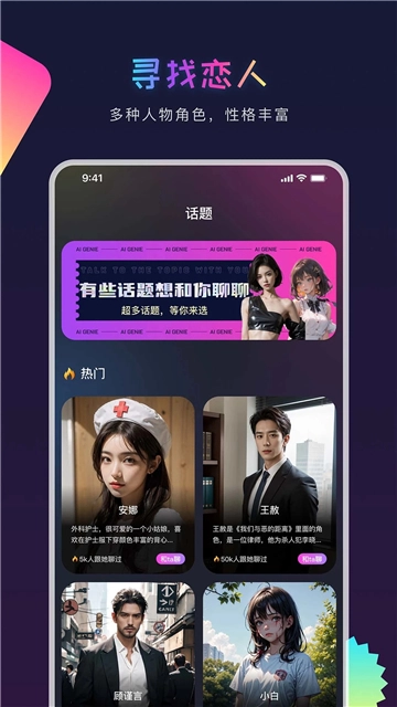 AI Genie是一款超好用的恋爱模拟软件,基于人工智能技术打造。在这儿,你能随心塑造心仪的虚拟角色,并与他或她实时互动交流,沉浸式体验甜蜜恋爱与情感交互。此外,还能创建社区,寻觅其他志同道合的朋友,一起探讨各种观点话题、畅所欲言。这真的是一款极为好用的AI模拟软件,感兴趣的小伙伴们,赶快到AI Genie来体验一番吧!