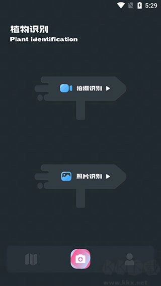 2. 开启识别模式:轻点底部第二个菜单,即可进入植物识别模式,该模式支持拍摄识别与照片识别这两种方式。