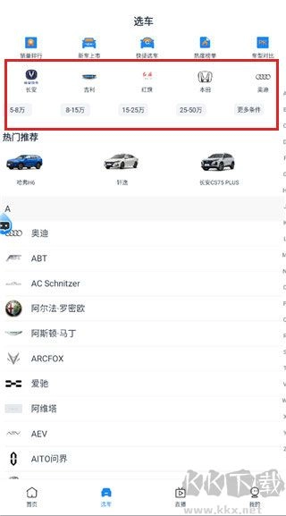 2. 能够依据品牌与价格,筛选出心仪的汽车。