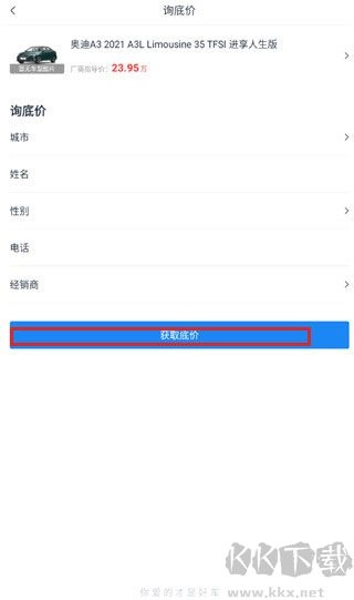 6、填写城市、姓名、性别等信息,即可获取低价。