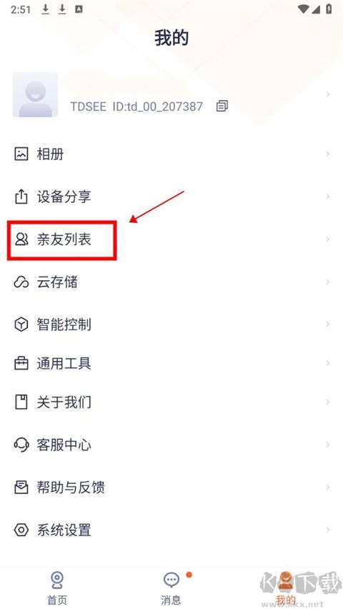 2. 点击,进入亲友列表。