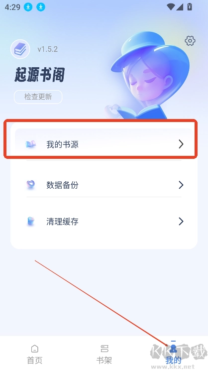 1. 打开主页,点击“我的”选项,随后点击“我的书源”。