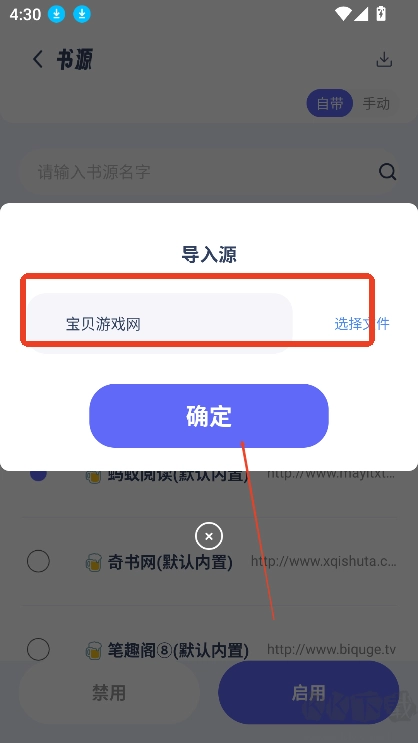 4. 输入书源地址,也就是输入导入书源地址,随后点击确定就可以了。