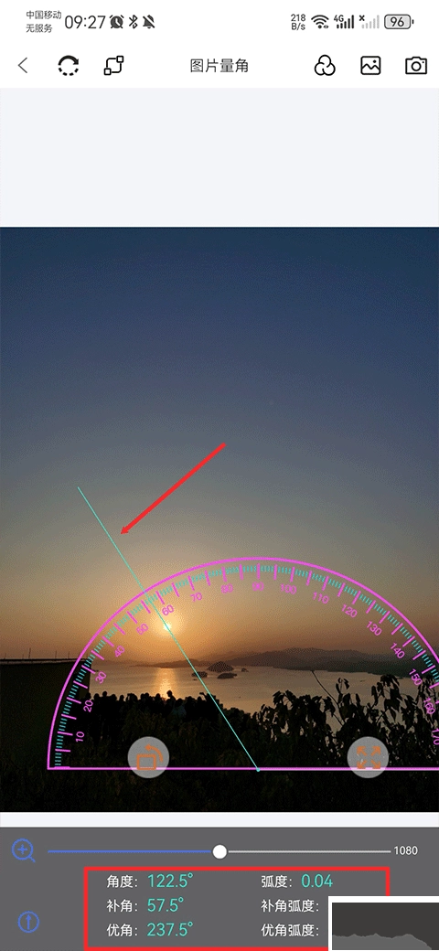 图片量角器现已增添一键切换量角器角度的功能,同时,旋转量角器时能够显示量角器当前的角度信息。