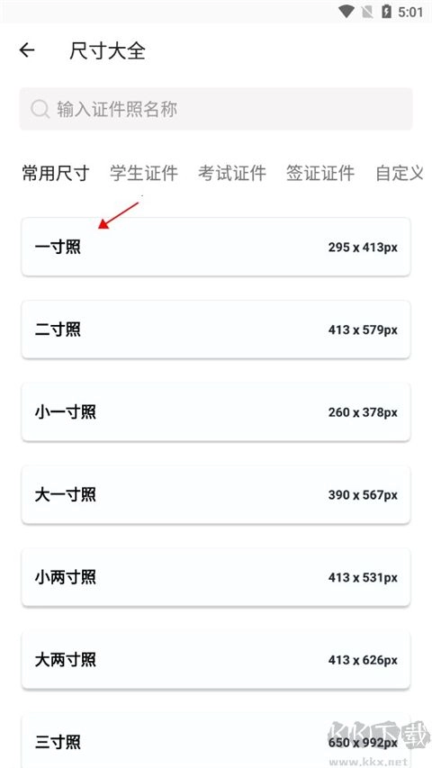 2. 依据需求挑选照片尺寸,比如一寸照,选取适宜的规格。