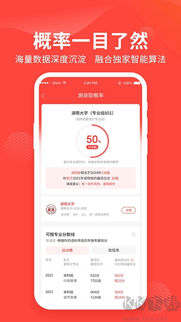 4. 具备“一分一段”排名分析功能,助力考生精确锁定自身竞争位次,合理优化志愿梯度。