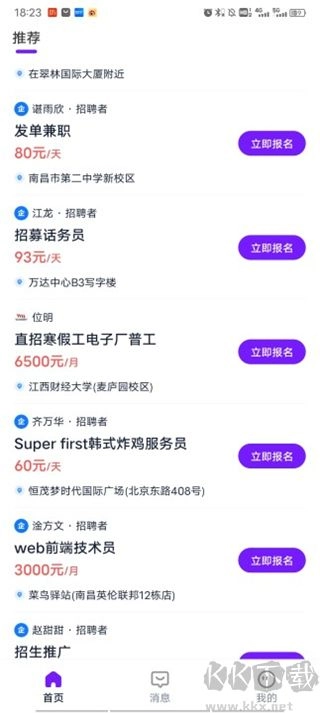 1、用户一进入软件首页,便能看到软件推送的大量岗位信息。