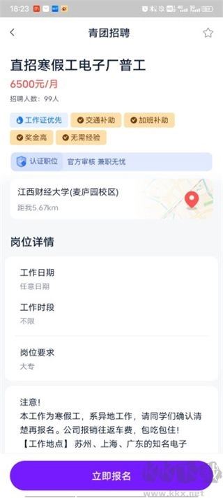 2、找到并进入你心仪的岗位页面,页面内有详尽的岗位信息,随后点击“立即报名”。