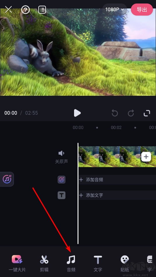 3、轻点底部的“音频”,于随后呈现的选项里点击“音乐库”