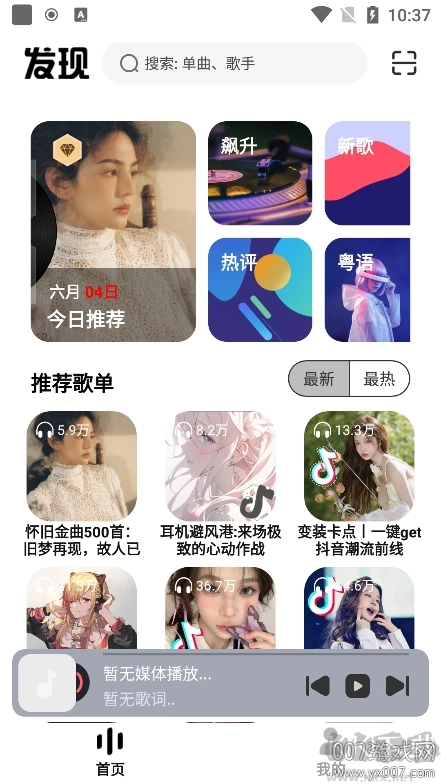新歌速递:实时同步各大音乐平台最新发布的作品,带有标记的为独家首发。