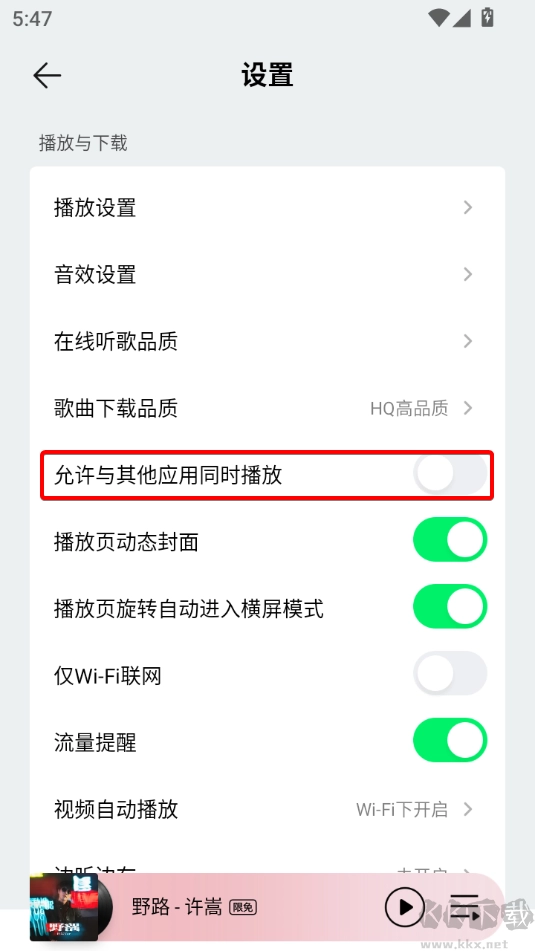 3、于设置里寻觅“允许与其他应用同时播放”这一选项,并将其开启,如此一来,播放便不会再被其他应用打断。
