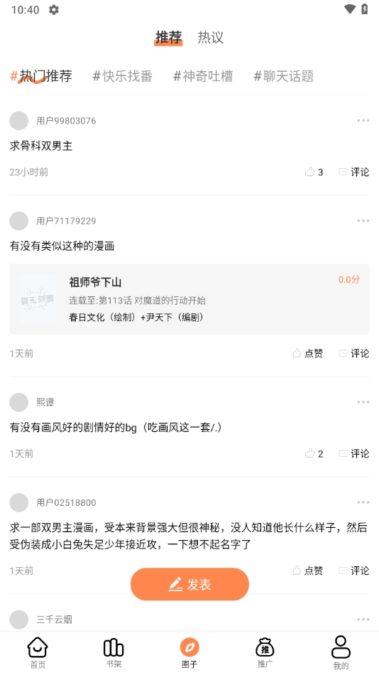 3、初次使用时,你能够选择性别,并对偏好类型进行定制(例如少年、耽美、职场等),系统会依据这些信息推荐个性化的内容。
