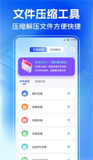 1. 一键瘦身功能:面向图片、视频以及音频这三大类文件,给出高效的压缩解决办法。