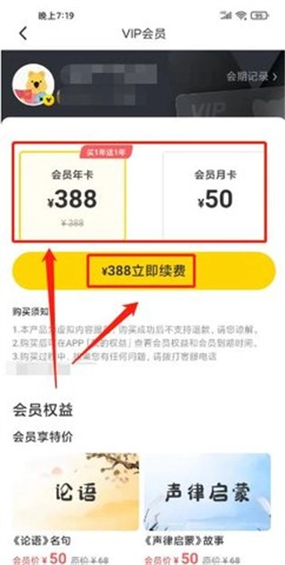 3、进入VIP会员界面,挑选会员套餐,点击【立即续费】即可。