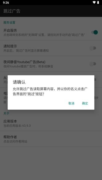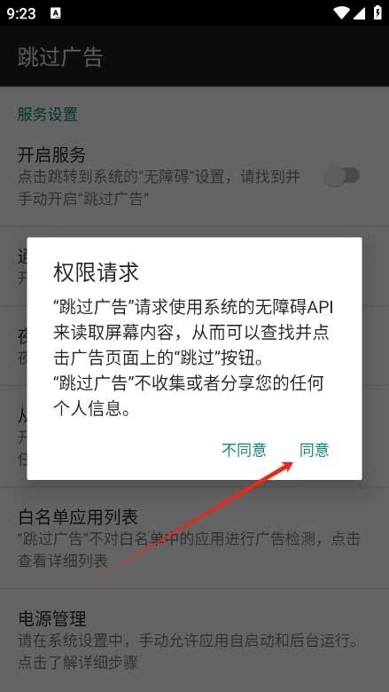 2. 进入之后,同意AdSkipper关于跳过广告的权限请求。