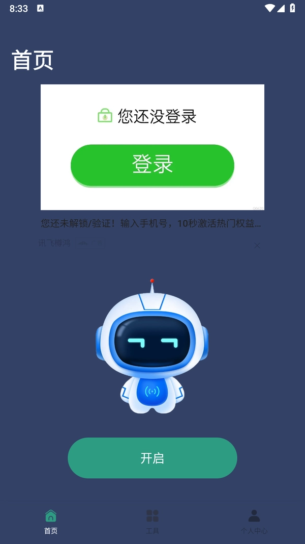 1、打开软件点击开启。