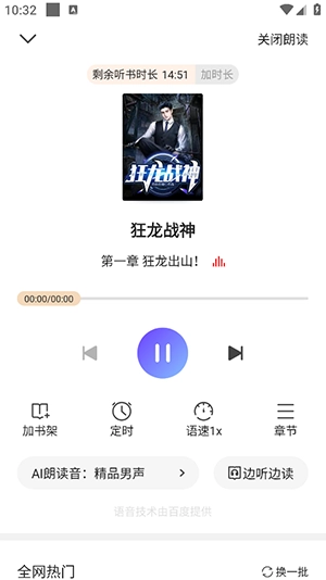 5、点击听书后,在听书界面还能返回阅读界面。