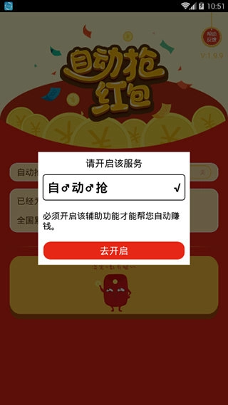 2. 开启自动抢红包功能开关。