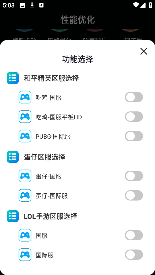 4、接着为特定的游戏(例如和平精英)挑选相应的服务器。