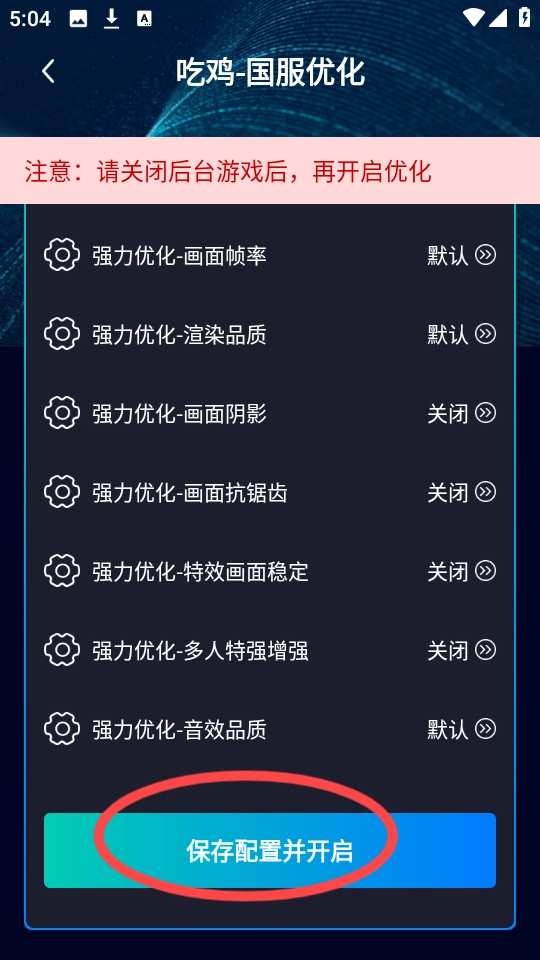 5、完成配置后进行保存,这样就能开启优化后的游戏体验啦。
