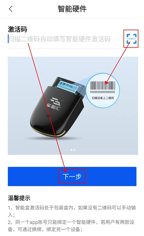 最后,用户可以选择输入设备码,或者直接扫描设备上的条形码来完成设备的绑定。