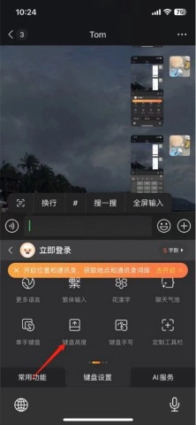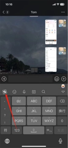 1、在弹出的虚拟键盘上,点击左上角类似打开游戏菜单的那个菜单标识。