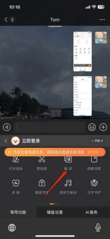 3、在键盘上方,会弹出一个用于中英翻译的输入框,此刻就可以准备翻译你想说的话啦。