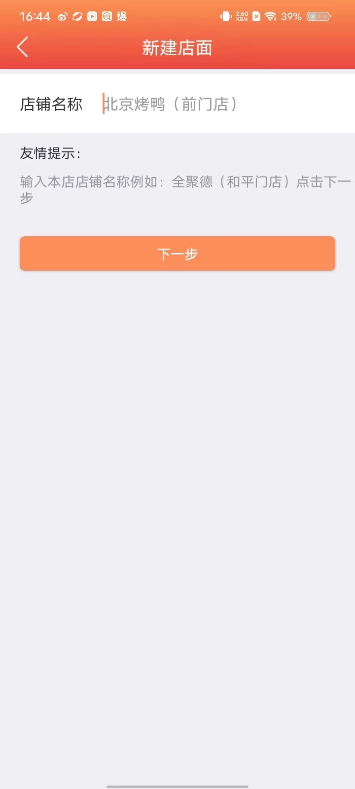 1. 在首页,能够新建店铺,输入店铺名称后完成对外卖平台的绑定。