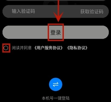 3、填入您的手机号码及验证码,勾选用户协议后,点击【登录】即可。