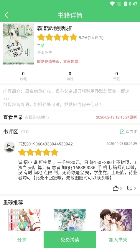 2、通过智能算法分析用户的阅读偏好,为用户推荐最适合的书籍,提升阅读体验。