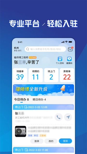 4、在天猫平台,所有与之合作的服务师傅都需完成喵师傅核销。若师傅未掌握该核销流程,将无法从天猫渠道获取订单资源。