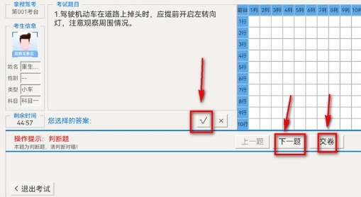 3、答题时,请仔细审题,在选出你认为正确的答案后,点击【下一题】接着作答。待所有题目都完成后,点击【交卷】按钮。交卷之后,系统将自动统计成绩,届时你就能查看自己的考试成绩。