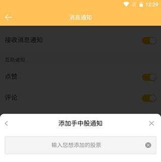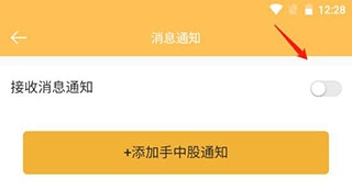 4、若“接收消息通知”按钮呈现橙黄色,此时点击下方的“添加手中股通知”。